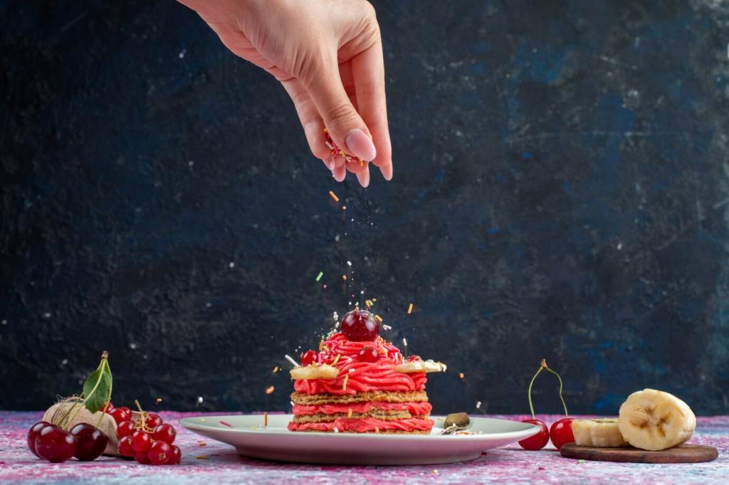 Practice paneling and stacking on lightweight dummies to master speed and accuracy. Run micro-batches for fillings, adjusting sweetness, texture, and color. These tiny tests save ingredients and reveal techniques that scale beautifully for larger commissions and celebrations.